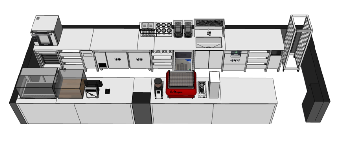 저희가 카페를 컨설팅할때 가장 신경을 많이 쓰는 부분 중 하나는 주방 동선의 효율성이에요. 효율적인 주방 업무를 위해서 동선은 더욱 단순하고 명확하게 설계되어야 해요. 정해진 구역에서 각 직원이 맡은 역할을 수행하고, 루틴을 설정해 체계적으로 운영할 수 있게 하는 것이 주방 동선 배치의 핵심이라 생각합니다. |