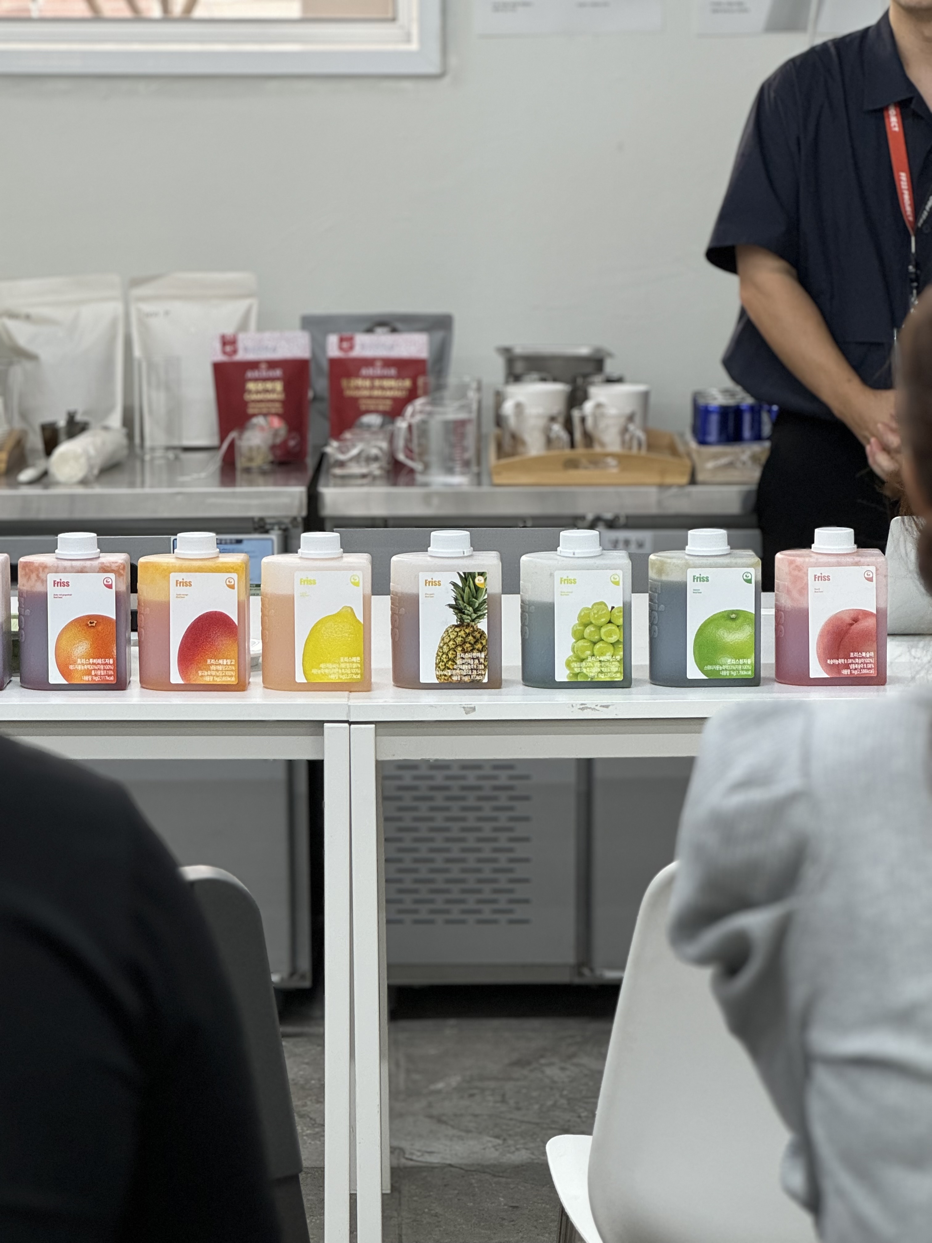 프리스는 요즘 카페 사장님들 사이에서 입소문이 나고 있는 제품인데, 그중에서도 자두 베이스가 가장 인기가 많아요. 자두의 상큼함과 달달함이 자두를 한입 베어 문 듯한 생생한 맛을 전달해 주거든요. 세미나에 참석하신 한 사장님께서는 프리스 제품을 이미 사용 중이신데, 너무 좋은 제품이라 혼자만 알고 싶을 정도라고 말씀하셨어요. 지금은 아는 사람들만 사용하는 숨은 보석 같은 제품이지만, 앞으로 더 많은 카페에서 주목받게 될 것 같아요. 더 많은 사람들께 알릴 수 있도록 저희도 힘써볼게요!!